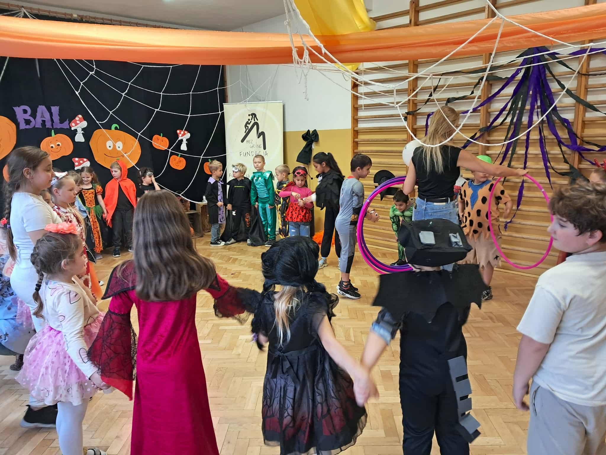Podczas Balu Dyni nie zabrakło gier, zabaw i tańców, które wypełniły salę radością i śmiechem.