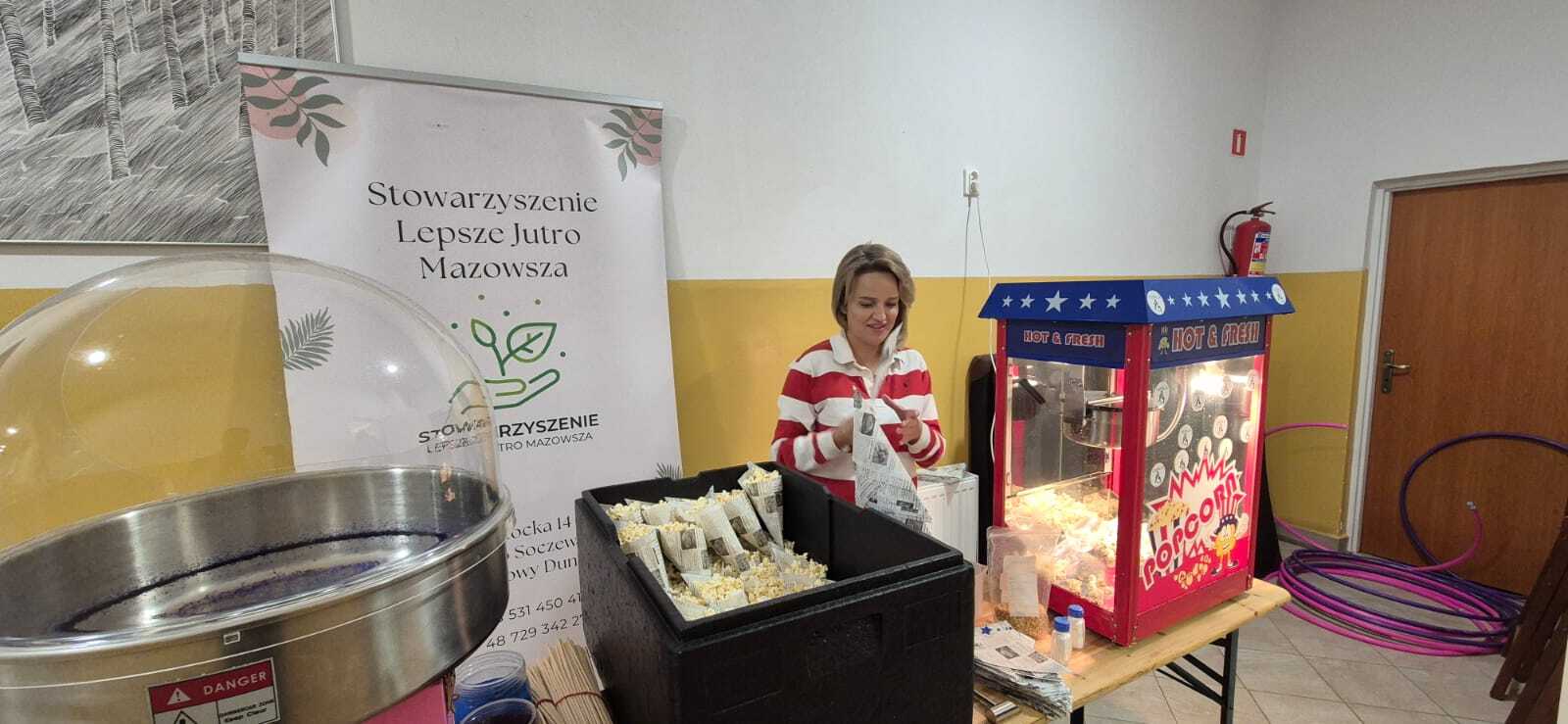 Każdy mógł się wygodnie rozłożyć, a atmosfera przypominała bardziej rodzinny seans niż szkolną salę. Do tego nie zabrakło smaków dzieciństwa: wata cukrowa i popcorn, które wywoływały szerokie uśmiechy i pachniały na cały korytarz.