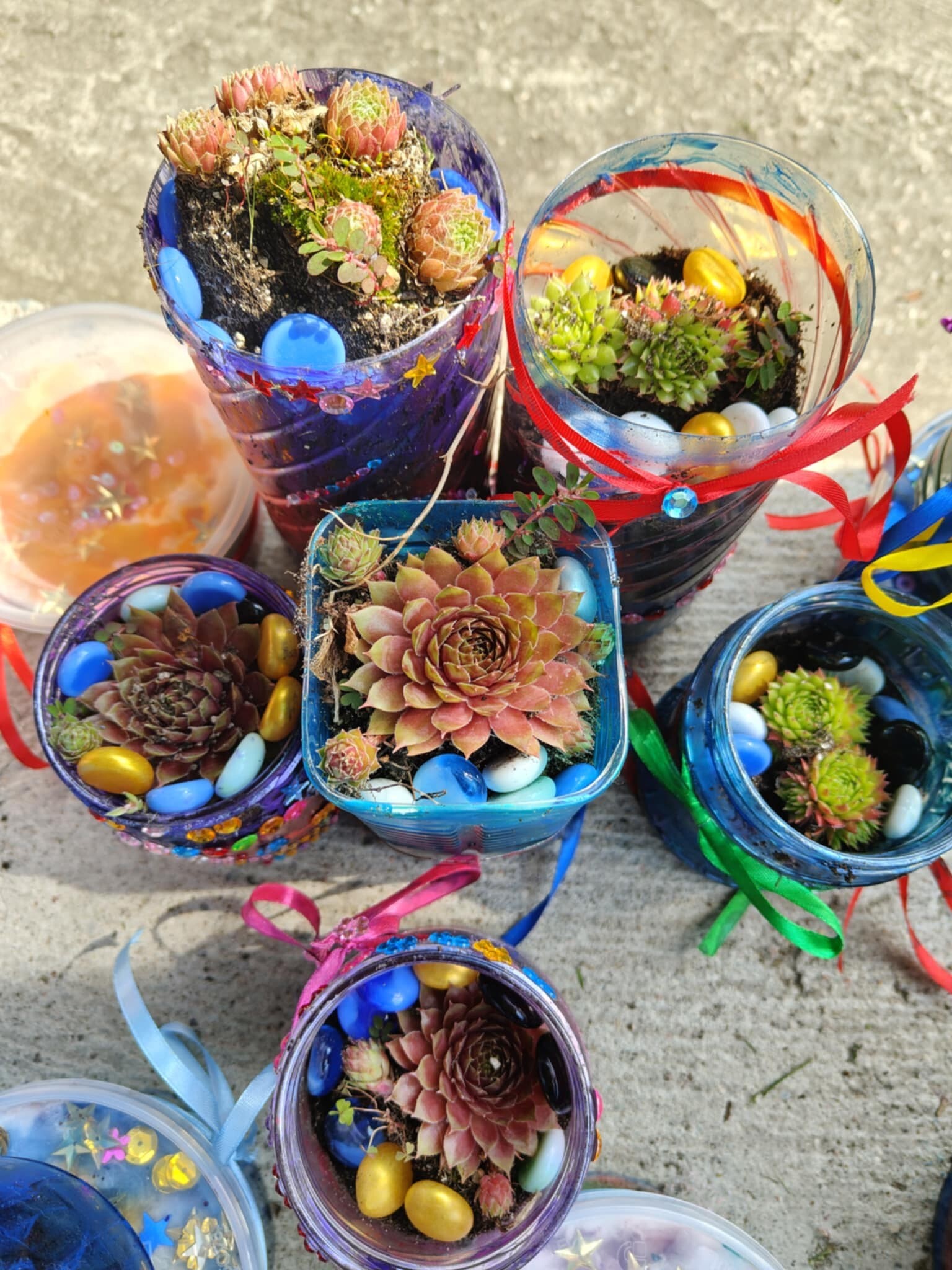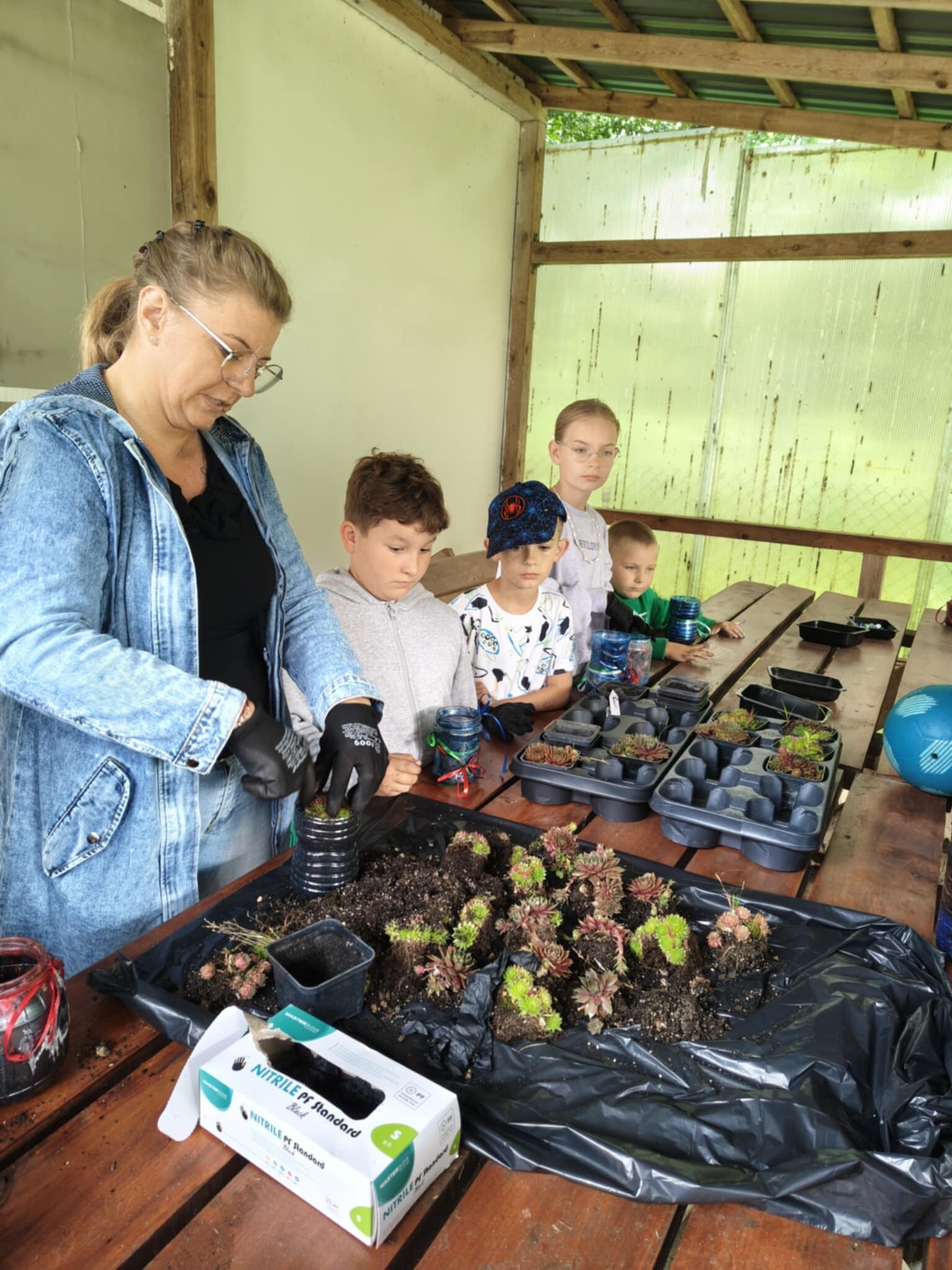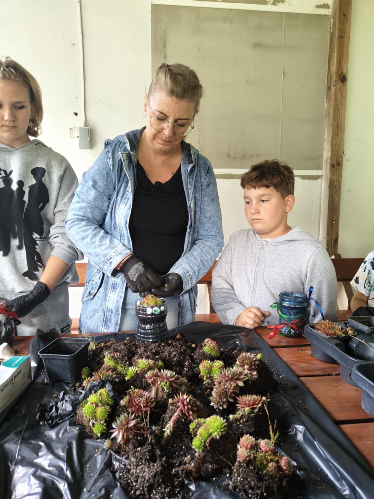 W otoczeniu zieleni i śpiewu ptaków odbyły się wyjątkowe eco-warsztaty, podczas których ze starych słoików, butelek i puszek powstały prawdziwe arcydzieła – doniczki wypełnione świeżo posadzonymi roślinkami.